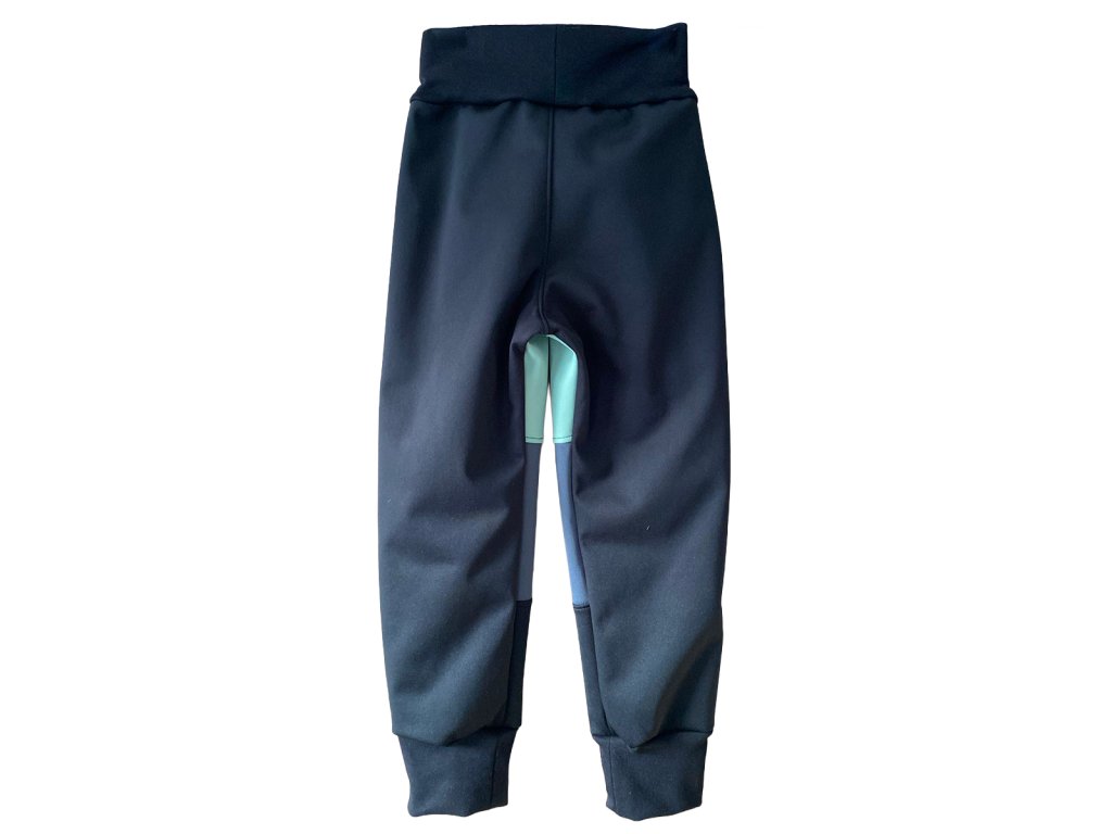 Černé softshellové kalhoty s fleesem s mint a šedou
