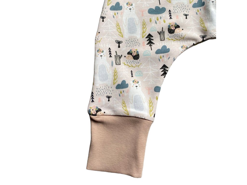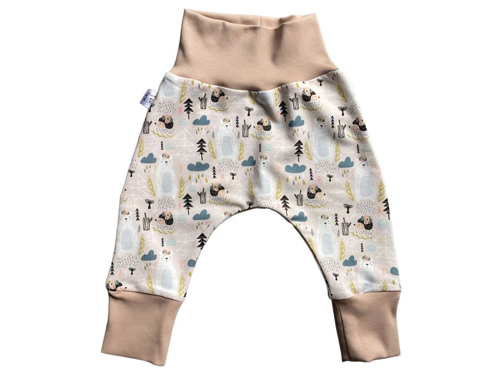 Rostoucí baggy kalhoty pro miminka a batolata – béžová se zvířátkami