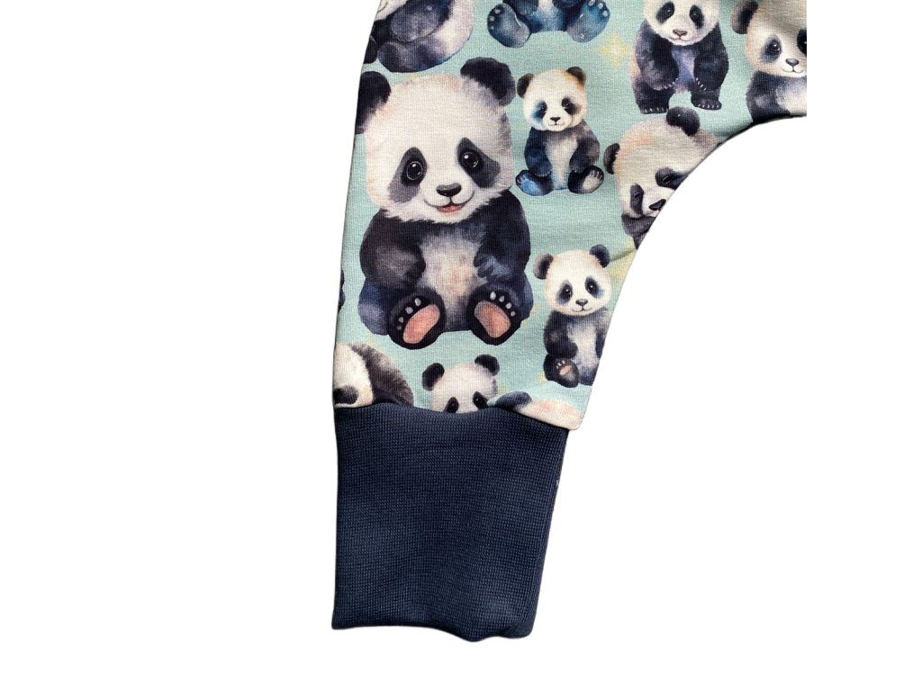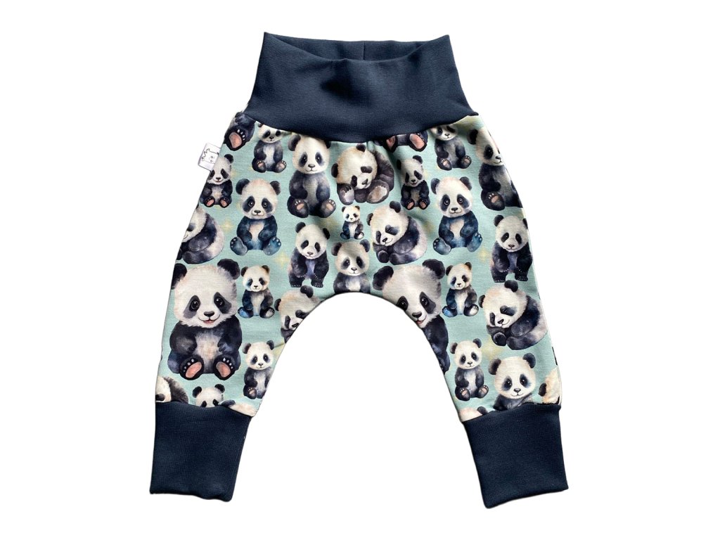 Rostoucí baggy kalhoty pro miminka a batolata – tmavě modrá s roztomilými pandami