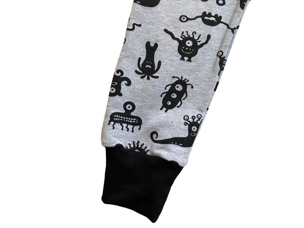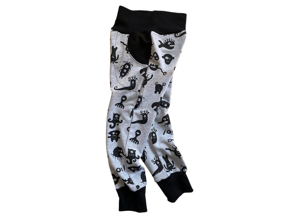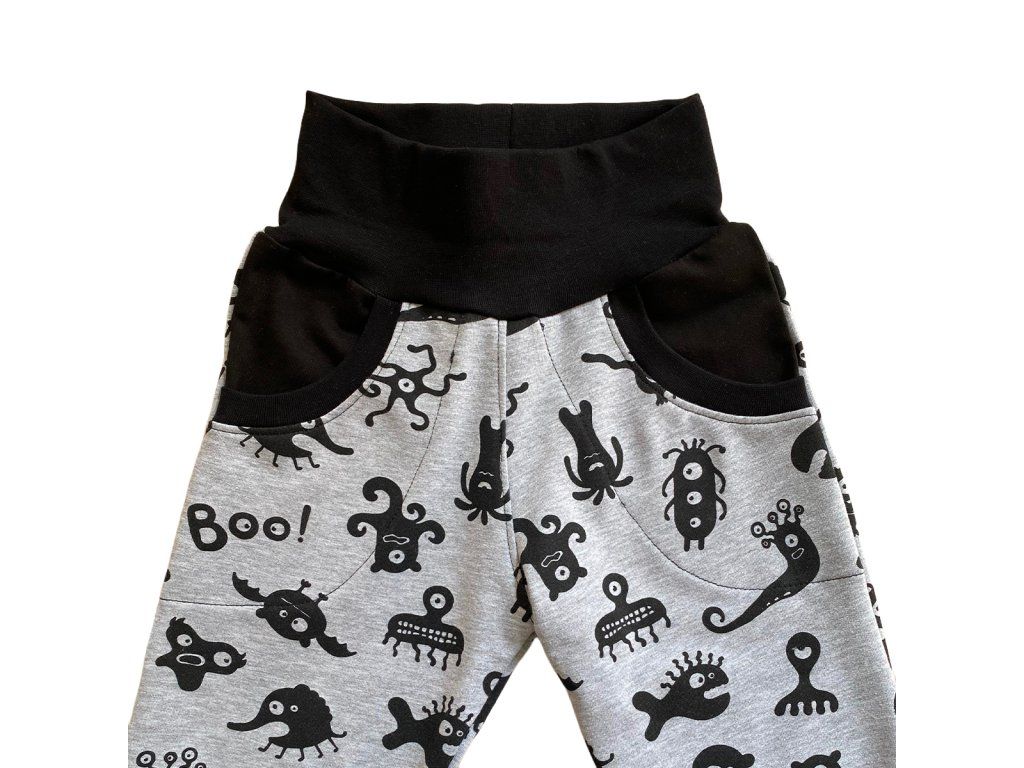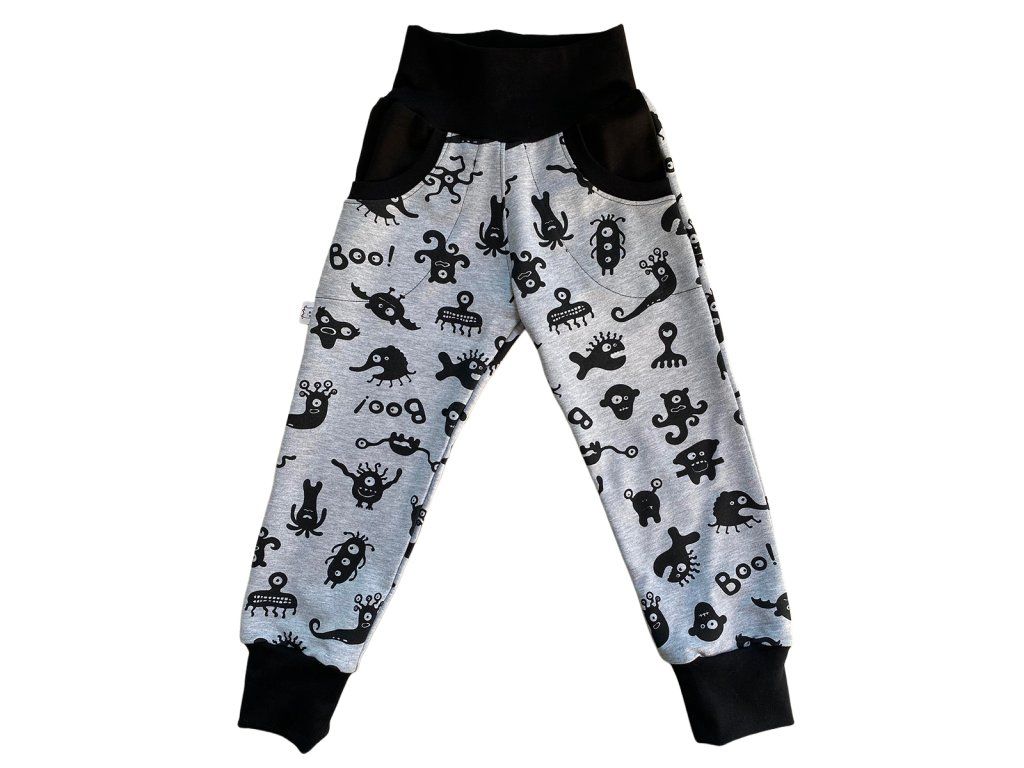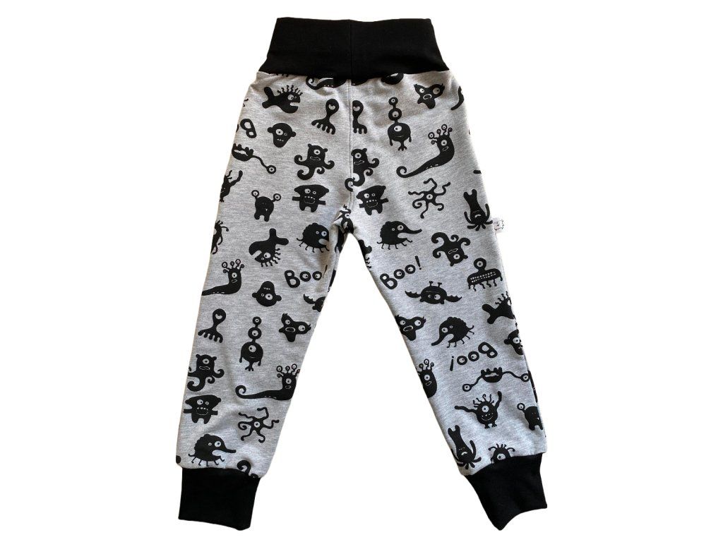 Rostoucí tepláčky – černošedé s příšerkami