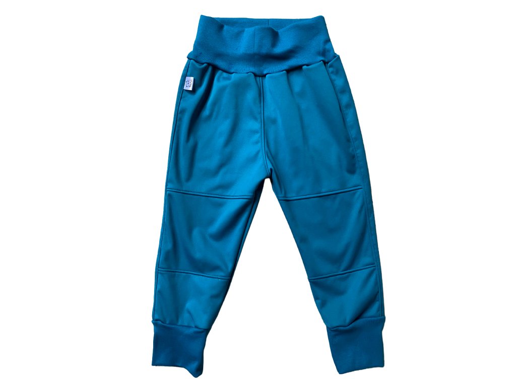 Dětské pružné rostoucí softshellové kalhoty s fleecem - PETROLEJOVÁ MODRÁ.