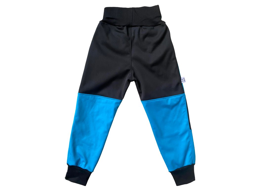 Dětské pružné rostoucí softshellové kalhoty s fleecem – černá/modrá