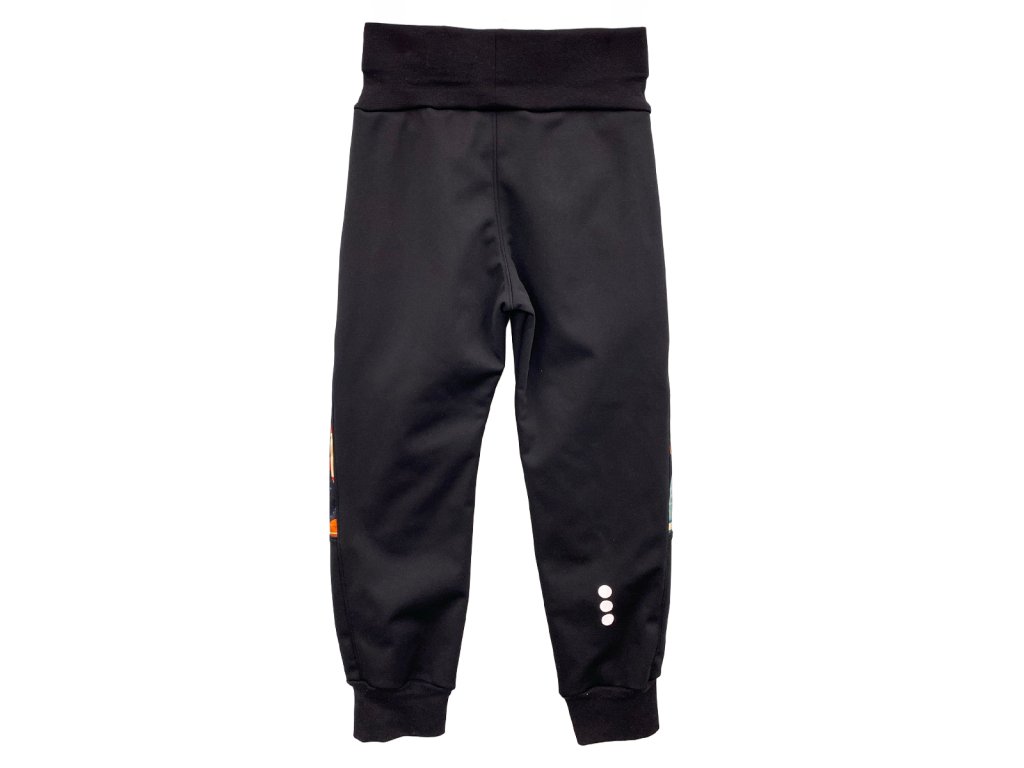 Dětské lehké softshellové kalhoty – letní/jarní – ČERNÉ S RAKETAMI