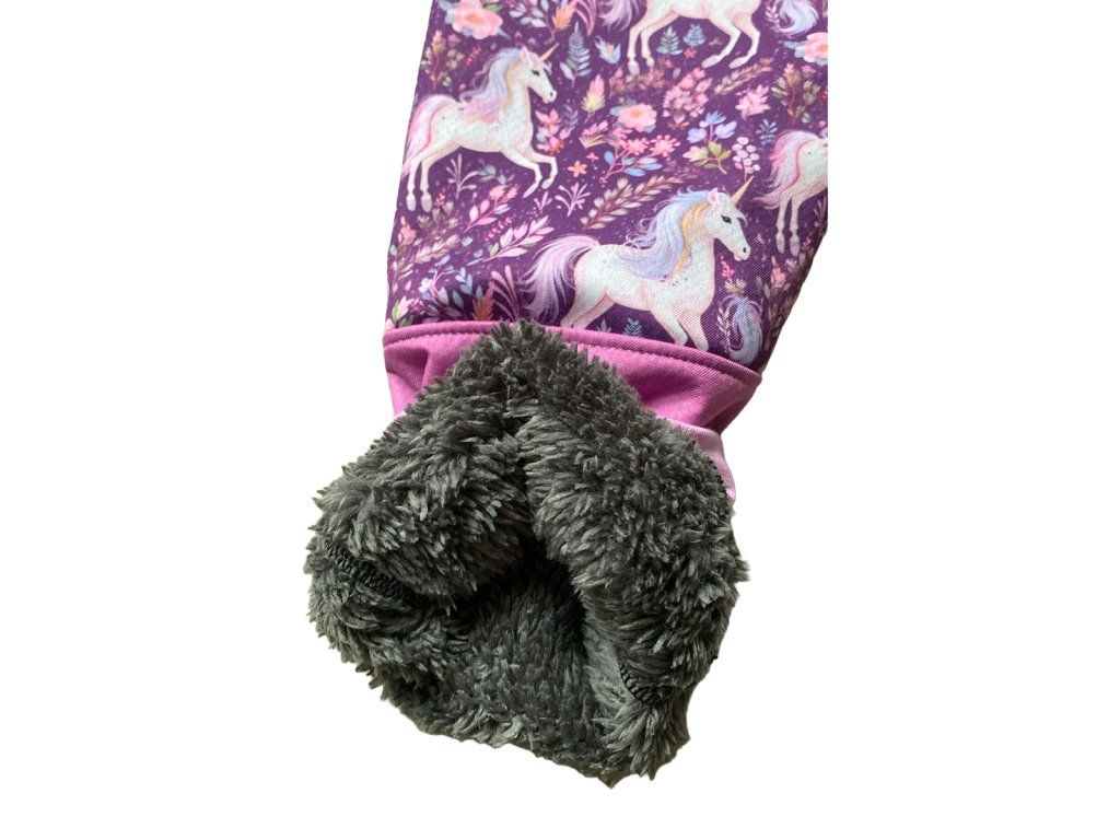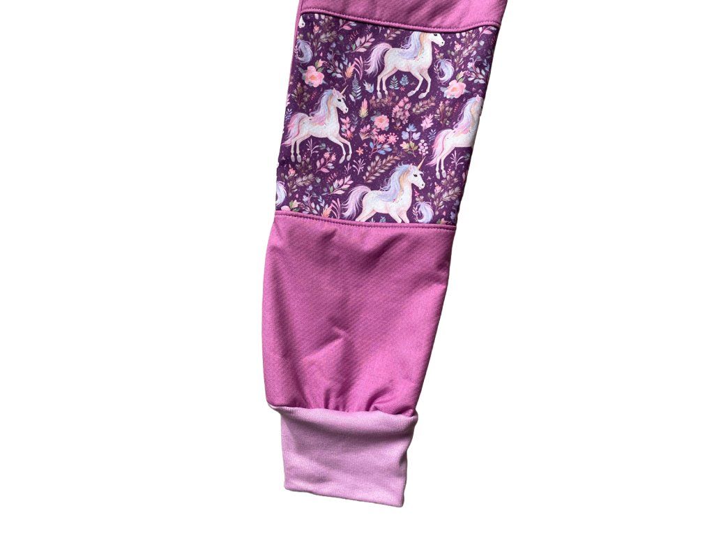 Extra hřejivé zimní softshellové kalhoty s beránkem – RŮŽOVOFIALOVÁ + JEDNOROŽCI