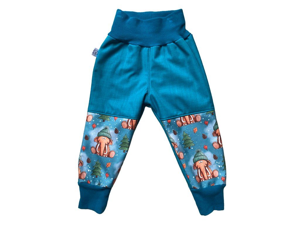 - Vzhled: Kalhoty nabízíme se vzorem mamutů na modrém pozadí a jsou ušity v pohodlném střihu BEZ KAPES.